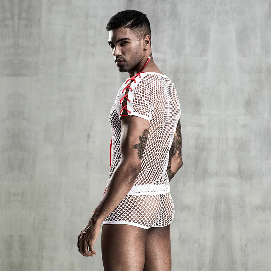 Men Alluring Doctor Uniform Mesh Lingerie Set Role Play